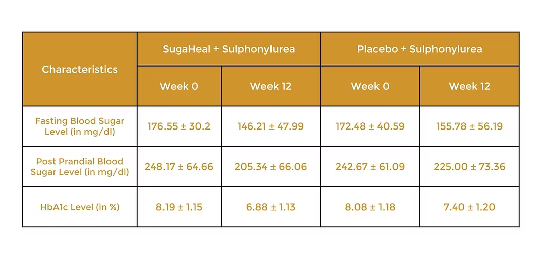 SugaHeal is an ayurvedic add-on therapy for people with diabetes. Which helps to maintain healthy blood sugar level and healthy Glycated Hemoglobin (HbA1c), reduces external insulin dosage, with lesser risk of Hypoglycemia.